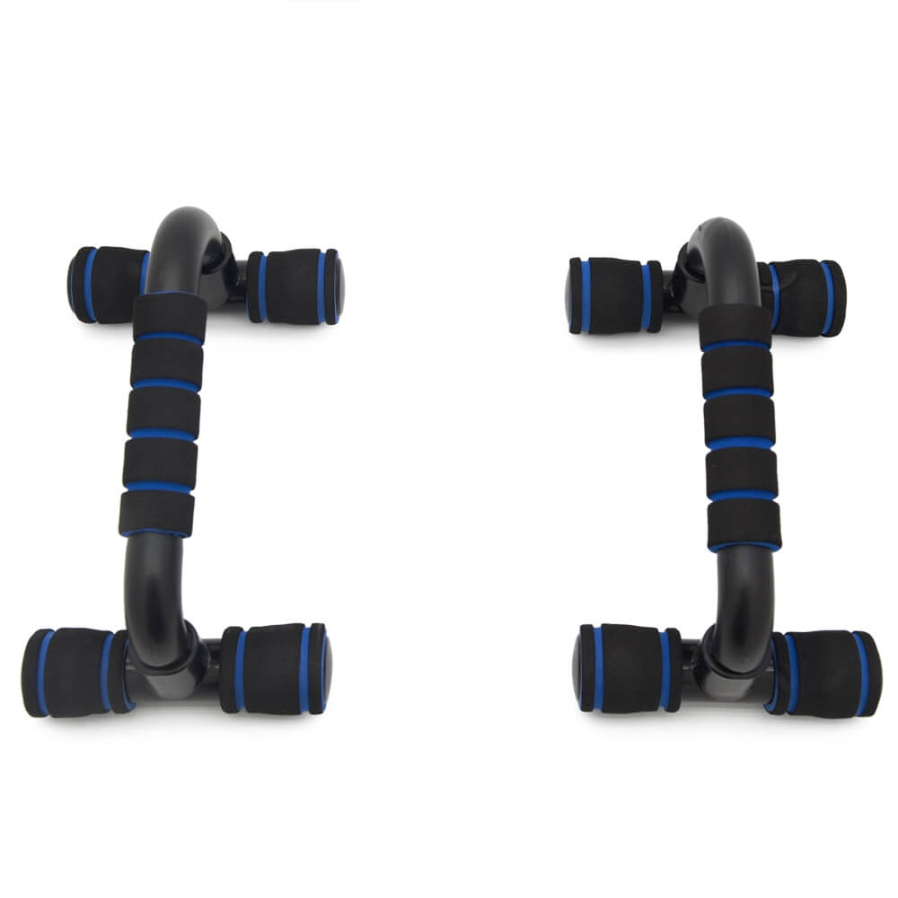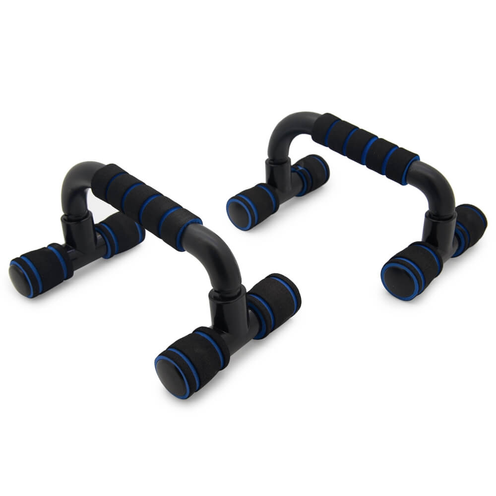 Упоры выполнены из высокопрочных полимерных материалов, окрашенных глянцевой черной эмалью. На упоры в месте соприкосновения с полом надеты противоскользящие пластиковые трубки. Рукоятки из плотного пенополиуретана. Упоры применяются во многих упражнениях с опорой рук в пол, например, отжиманием. Максимальная допустимая нагрузка на упоры не менее 100 кг.
